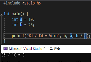 그러니까, 25 / 10에서 2가 나온 것처럼 그 '몫'만 나온다는 뜻이다.