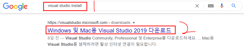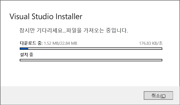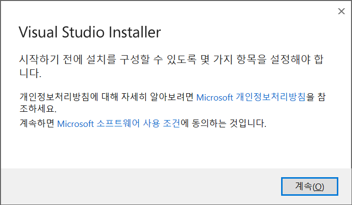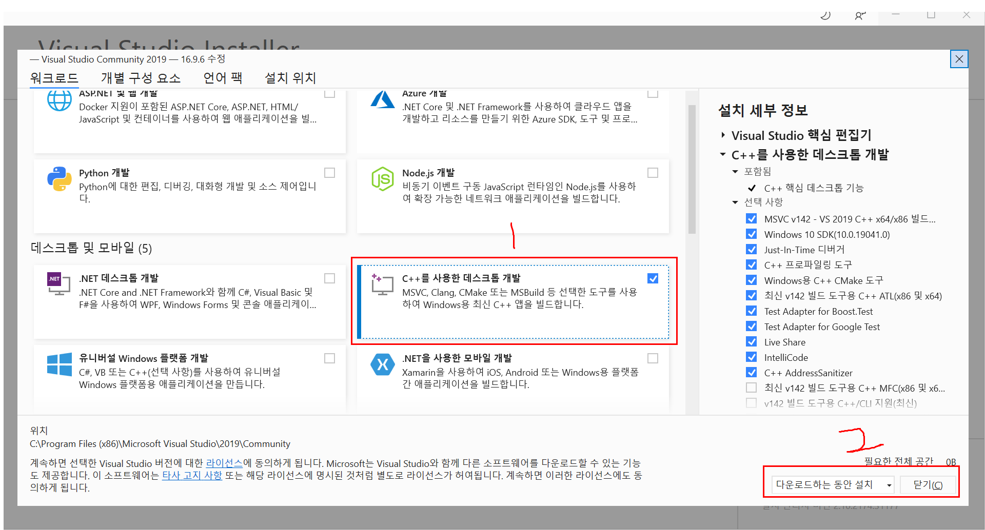 C++을 사용한 데스크톱 개발 워크로드를 선택하면 된다.