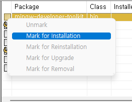 체크 박스를 클릭하고 Mark for Installation 을 클릭하면 된다.