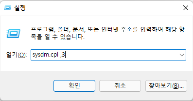Win + R을 눌러 실행창을 열고 아래 사진처럼 입력하면