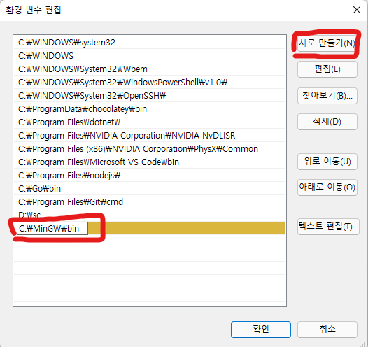 이제 gcc와 g++을 사용하려면 환경 변수 Path에 추가해주어야 하는데
