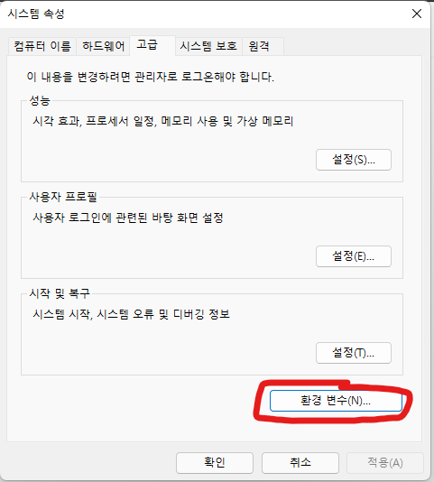 확인을 누르고 꼭 환경 변수 설정 창을 닫아야 적용 된다.