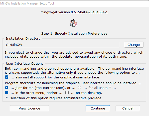 위 링크를 들어가서 MinGW 설치 파일을 다운받아준다.