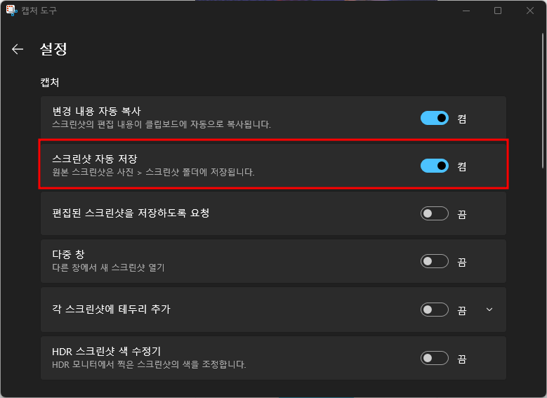 스크린샷 자동 저장 옵션이 활성화 되어 있다면,