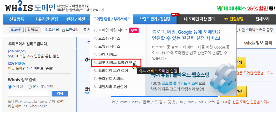 (2) 외부 서비스 도메인 연결 (whois 한정)