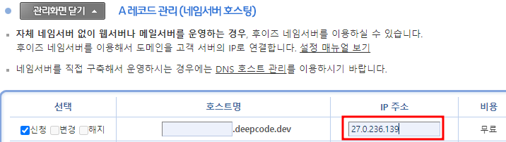 다른 기관에서도 DNS 설정, 레코드 설정 같은 메뉴를 클릭하면 된다.